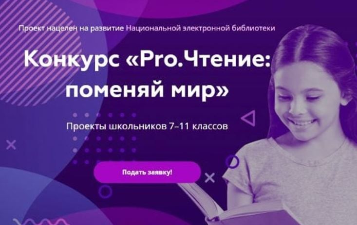 Российская государственная библиотека совместно с Департаментом образования и науки города Москвы и Лабораторией медиатехнологий в образовании НИУ «Высшая школа экономики» проводит конкурс проектов «Pro.Чтение: поменяй мир» среди школьников 7–11-х классов для поиска новых цифровых возможностей обогащения процесса чтения.Идея проекта заключается в том, чтобы найти решение такой проблемы, как формирование мотивации к чтению.